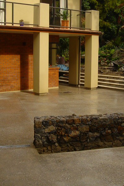 Steel countertops and polished concrete floor blend beautifully. Opposite page: An inviting veran-dah is balanced by a border of The shower proved a simple addition, adding length to the side landing and gradu-ating the stair barrier. ... Access Document